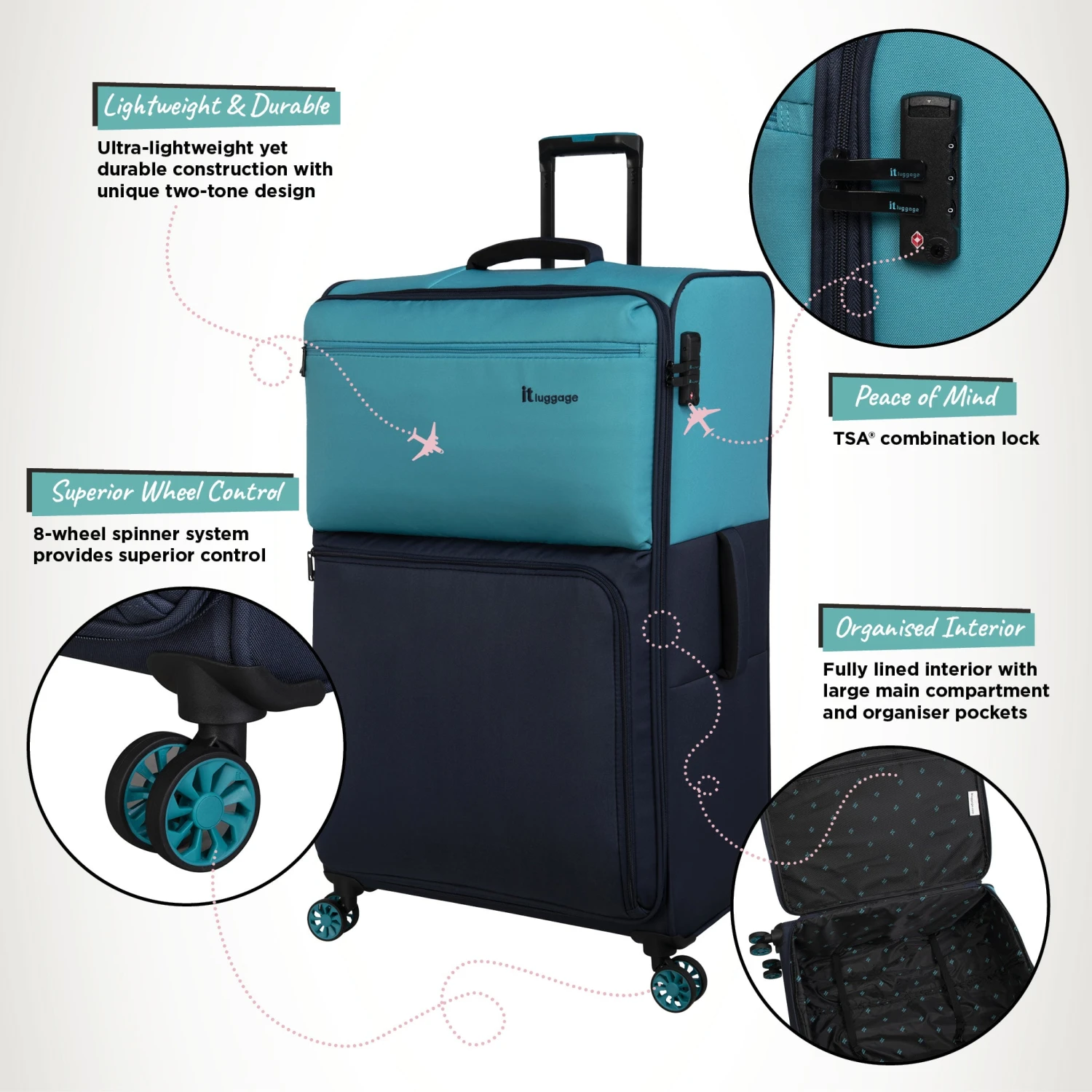 The Duo-Tone Extra Large offers a massive packing capacity of 129L and yet extremely lightweight making it ideal for longer holidays, or when flying with airlines with stricter weight restrictions.